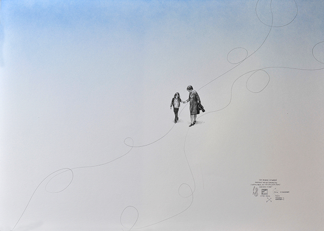 The exhibition consists of drawings as a contemporary commentary [A4 pencil on paper].